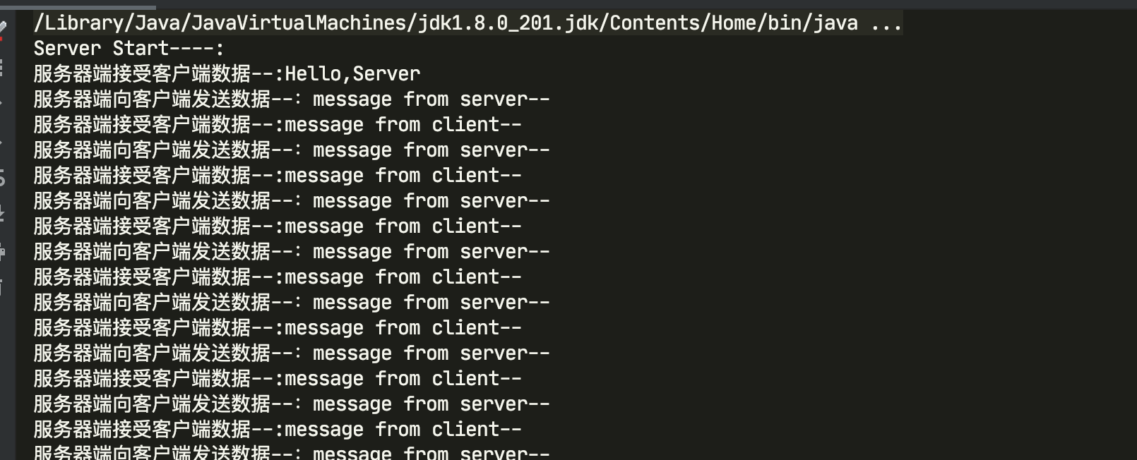 System.out.println("客户端向服务器端发送数据--:"+sendText);